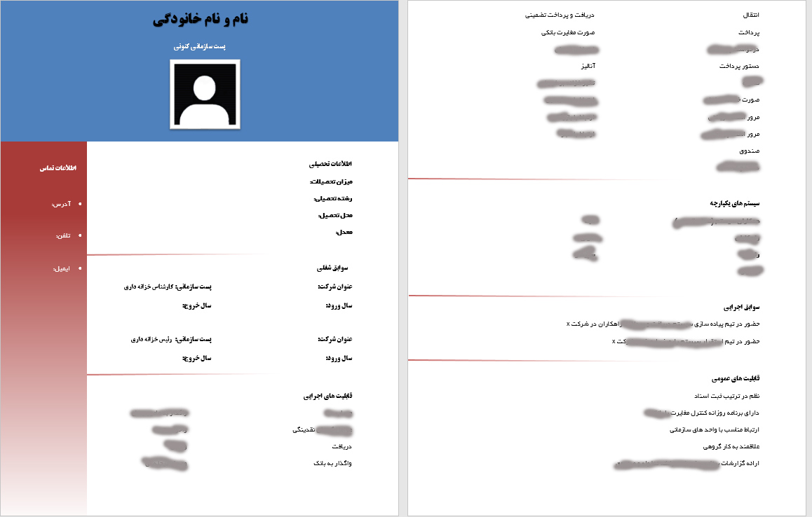 رزومه کارشناس خزانه داری، رئیس خزانه داری (دریافت و پرداخت)- استایل RPA1